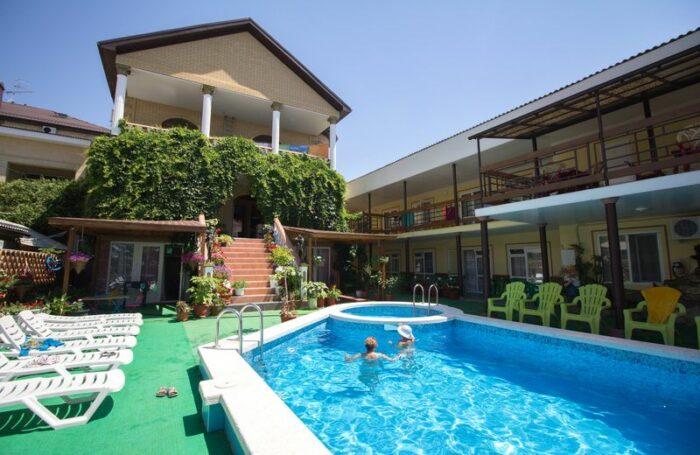 Жилой фонд состоит из 2-этажного корпуса. В 2-х 3-х 4-х местных номерах имеется ТВ, холодильник, кондиционер, санузел (душ, туалет, умывальник), площадка с видом на море. На площадке находятся: диваны, холодильники, стол с самоваром для чая и кофе. Около бассейна расположены лежаки, беседка со столиками, где можно отдохнуть и попить прохладительные напитки. Для детей игровая площадка. Подача горячей и холодной воды круглосуточно. Резервный электрогенератор, резервный запас воды. Одноместных номеров нет.